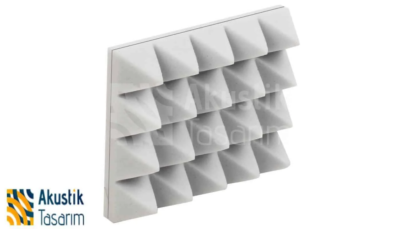 Piramit formun asıl etkisi, ses dalgalarının yüzeyde kırılmasını sağlayarak eko (yankı) oluşumunu sıfıra indirmektir. Düz bir yüzeye göre yüzey alanının genişlemiş olması, emilim performansını (absorption) %40 oranında artırır. Bu formun estetiğini ve performansını daha şık bir bitişle tamamlamak isterseniz, oda girişlerinde Ses Yalıtımlı Kapı çözümleriyle sünger uygulamasını destekleyerek ses sızıntılarını tamamen kesebilirsiniz.