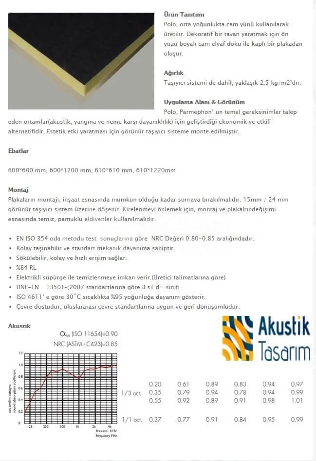 | Akustik Değer | NRC Değeri 0.80-0.85 aralığındadır. |
